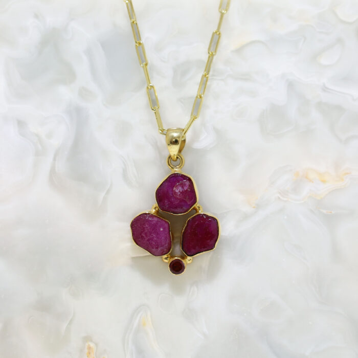 Sirius Atelier’nin bu çok özel tasarımı, iki ateş taşının – Yakut ve Garnet’in – kadim titreşimlerini bir araya getiriyor. Bu kolye, yalnızca bir takı değil; yaşam gücü, tutku ve ruhsal koruma enerjisinin birleşmiş hali…