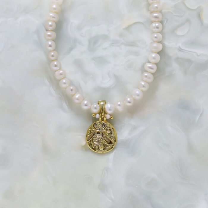 Bu tasarımda arı ile inci birleşerek Antik Efes’in ruhunu yeniden canlandırıyor: