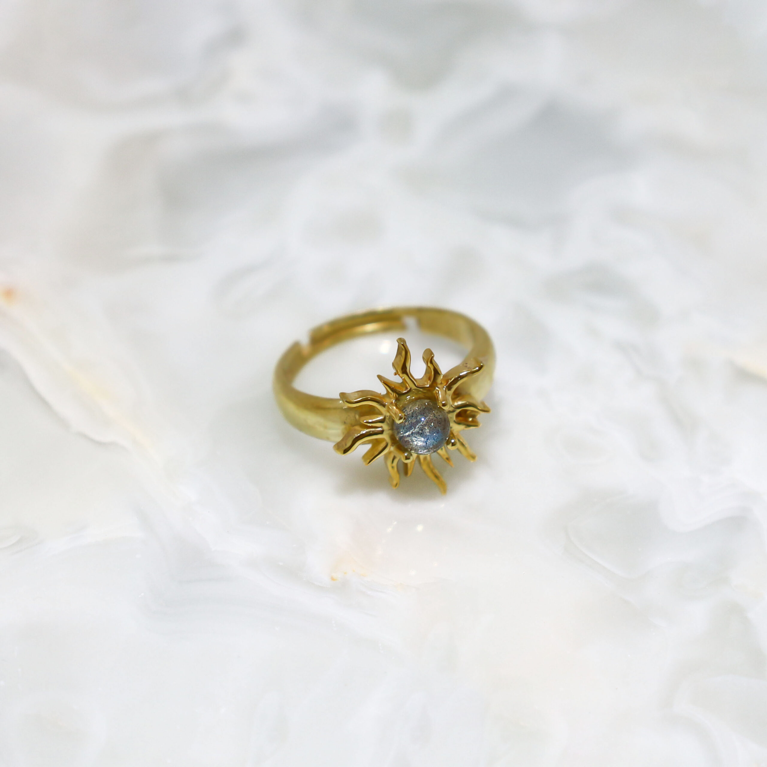 Bu tasarım, Labradorit’in dönüşüm gücü ile Güneş’in aydınlatıcı enerjisini birleştirir — içindeki potansiyeli uyandırmak, karanlıkta bile parlayan yönünü ortaya çıkarmak için.