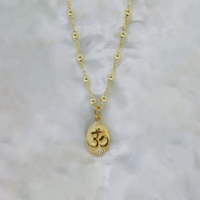 Om aynı zamanda zihin, beden ve ruhun uyumunu getirir; içsel dinginliği hatırlatır. Bu kolyeyi takan kişi, kalbinin her atışında evrenin sonsuz mantrasını taşır: